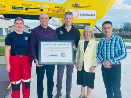 A special presentation at the hangar last night officially acknowledged Unison as a core pillar of support for the region’s medical air rescue service.